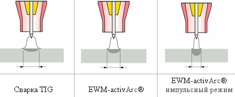 Технология EWM-activArc® применяется во всем диапазоне сварочных токов. При использовании EWM-activArc® в комбинации с TIG-сваркой импульсной положительные свойства метода только усиливаются.