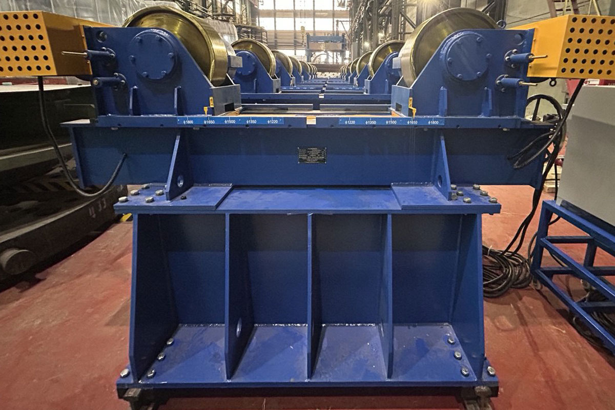 Регулируемый сварочный вращатель KTG-100T грузоподъемностью 100 тонн состоит из одной приводной и трех холостых опор.