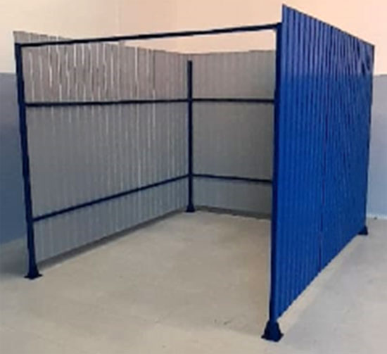- Сварочная кабина из металлического листа 4 м (ширина), 3 м (длина), 2 м высота с ПВХ занавеской