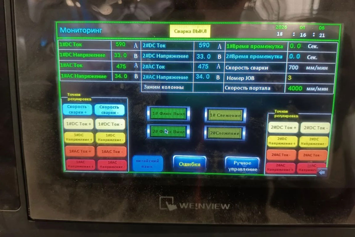 Текущее состояние сварки можно отслеживать в режиме онлайн, например, скорость сварки, положение головки, ток и напряжение, а также в любое время осуществлять оперативную корректировку параметров.