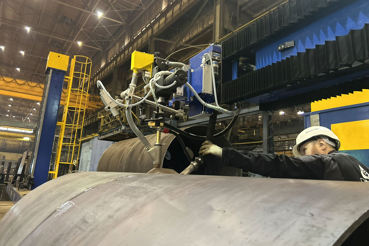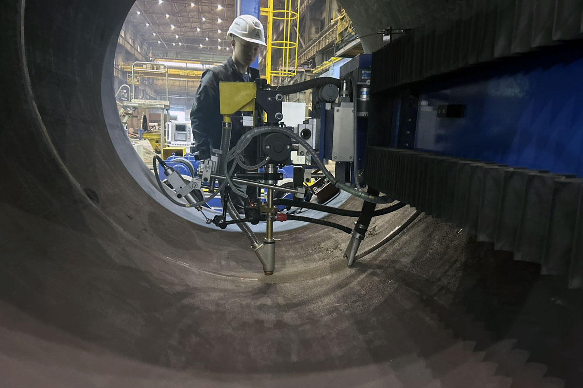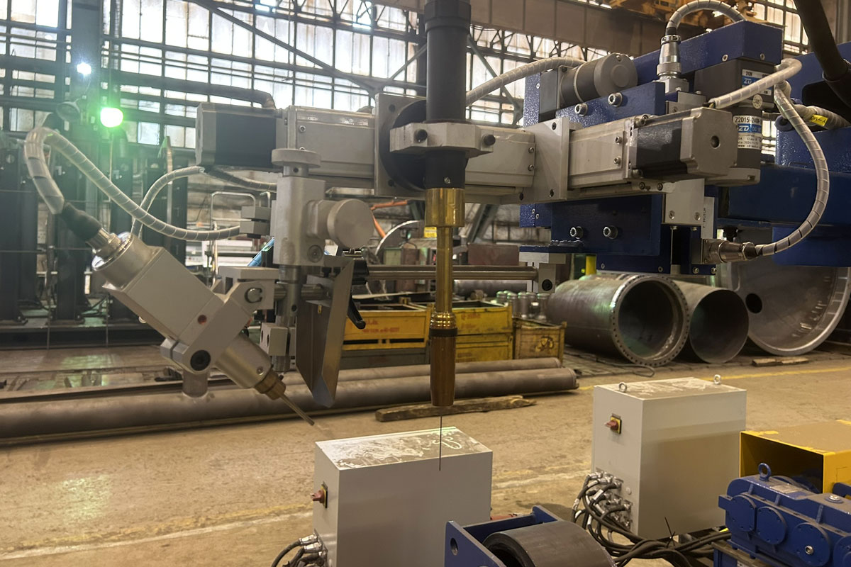Специалисты ООО «ДельтаСвар» разработали решение на базе двух сварочных колонн: первая колонна оснащена оборудованием для сварки под слоем флюса, а вторая – для полуавтоматической.