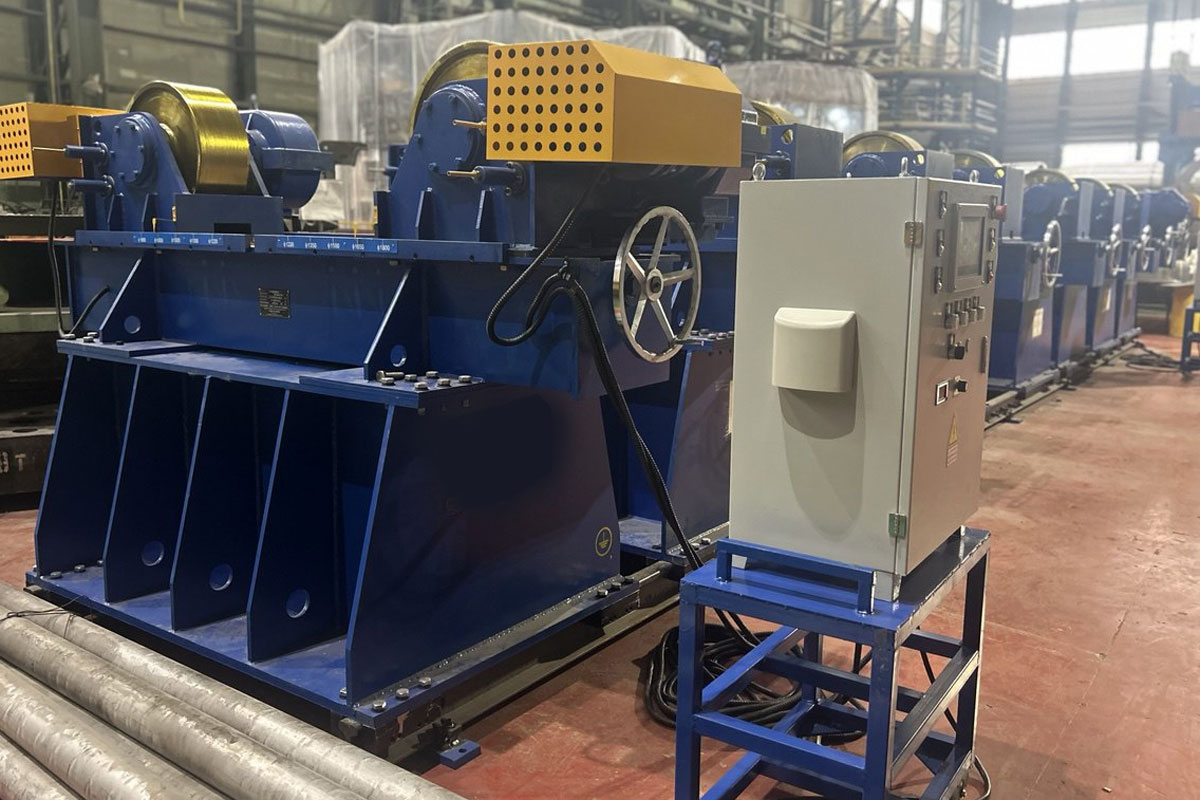 Специалисты ООО «ДельтаСвар» предложили оснастить производство сварочными вращателями KTG-100T, которые состоят из 1 приводной и 3 не приводных опор.
