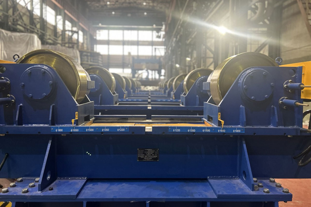 В этот раз было необходимо, чтобы вращатели имели грузоподъемность не менее 100 тонн и обеспечивали вращение изделий с диаметрами от 1200 до 1800 мм.
