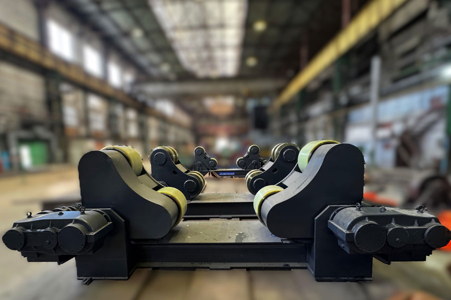 Также конструкция роликоопор обеспечивает возможность поворота вокруг оси корпусов с установленными патрубками длиной до 500 мм. Скорость вращения роликов варьируется от 18 до 120 м/час, а управление стендом осуществляется с дистанционного пульта (рабочая зона 30 м).