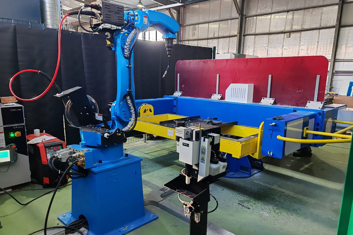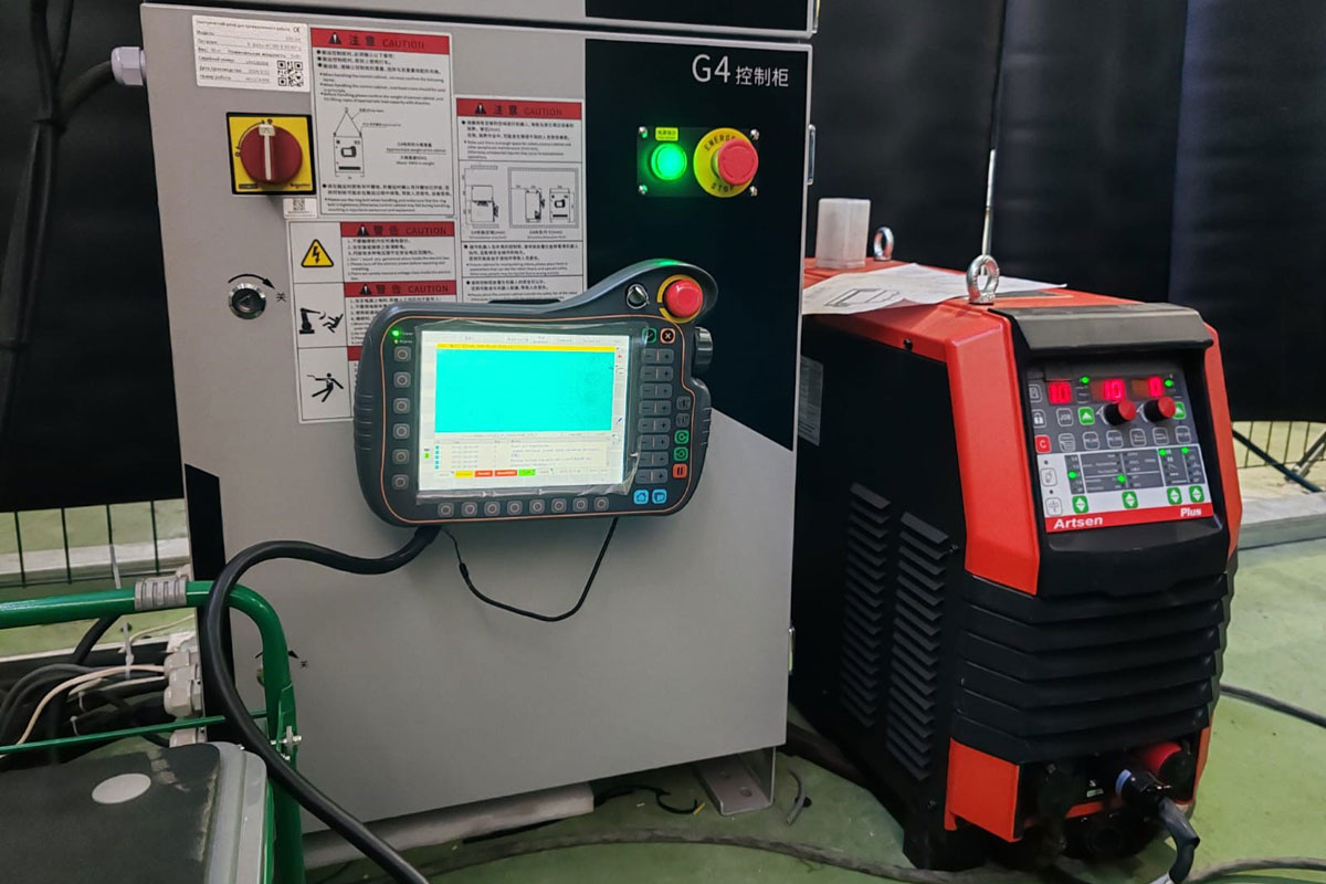 В качестве сварочного оборудования было выбрано оборудование китайского бренда MEGMEET. Сварочный источник ARTSEN PLUS 350DR отлично подходит для сварки низколегированных сталей. Также были поставлены устройство подачи проволоки и горелка с воздушным охлаждением. Для удобства работы комплекс был дополнительно оснащен станцией очистки горелки и системой против столкновений.