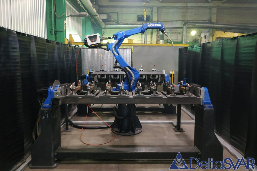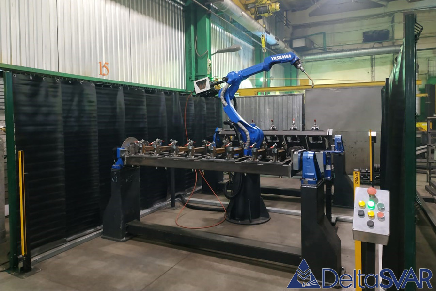 Компания «ДельтаСвар» осуществила успешную поставку и интеграцию роботизированного сварочного комплекса на базе роботов «Yaskawa» (Япония). Данная ячейка предназначена для МИГ/МАГ сварки различных деталей сельхозтехники и состоит из 2 рабочих зон, укомплектованных одноосевыми позиционерами модели HM-500D «YASKAWA» грузоподъемностью 500 кг.